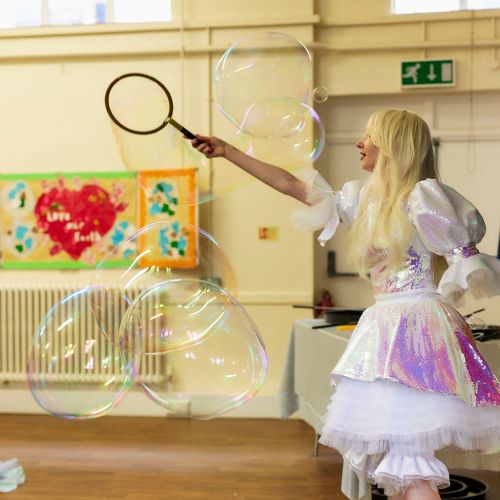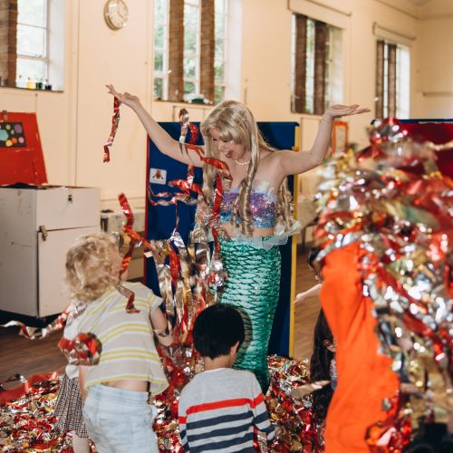 Children were delighted to meet magical mermaids and adventurous pirates, joining in under-the-sea adventures, exploring mysterious islands, and enjoying storytelling. The paper disco offered a lively dance experience with colorful confetti and upbeat music. Our signature bubble show enchanted the kids with mesmerising bubble tricks and interactive fun.
